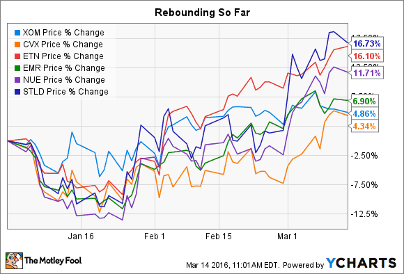 Chevron, Exxon, Nucor, Steel Dynamics, Eaton und Emerson sehen heute wie Schnäppchenaktien aus. Aber das wird nicht ewig anhalten. Tatsächlich sind sie 2016 im Vergleich zu 2015 bereits stark gestiegen. In anderen Worten, dir könnte die Zeit knapp werden, um gierig zu sein. Wenn du also an diesen sechs Aktien interessiert bist, solltest du dich lieber beeilen, bevor die Kaufgelegenheit vorüber ist.