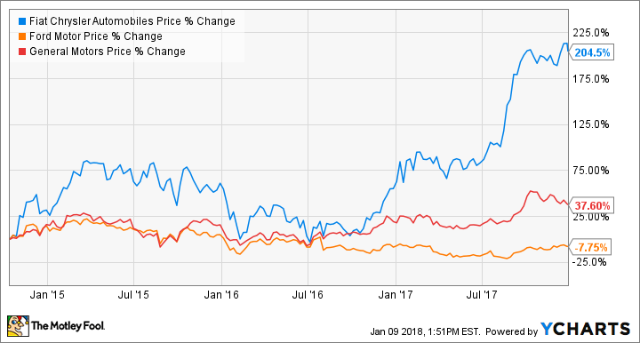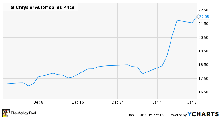 Die Aktien des italienisch-amerikanischen Autoherstellers Fiat Chrysler Automobiles (WKN:A12CBU) eröffneten 2018 mit einem Knall: Die Aktie ist in diesem Jahr um fast 20 % gestiegen, wobei ein Großteil dieser Wertsteigerung in den ersten drei Handelstagen des Jahres 2018 erfolgte.