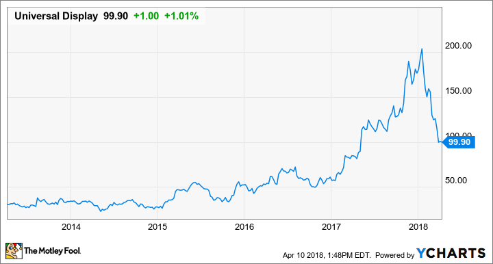 Nun, das Unternehmen entwickelte sich weiterhin gut, wobei die Aktie noch vor wenigen Monaten ihren Höchststand von 209 Dollar erreichte. Obwohl Universal Display inzwischen auf etwa die Hälfte seines Spitzenwertes gesunken ist – Grund: die Sorge, dass Apple sich für die Herstellung eigener OLED-Displays entscheidet –, hätte ich meine Investition noch einmal verdoppelt, wenn ich sie gehalten hätte.