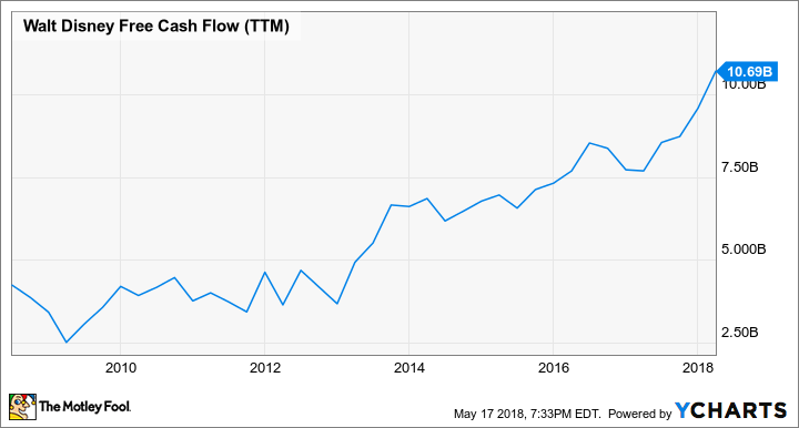 Als eine der effizientesten Gelddruckmaschinen der Welt hat Disney seinen Free Cash Flow in den letzten drei Jahren um 63 % gesteigert. Gleichzeitig hat eine aktionärsfreundliche Dividendenpolitik zwischen 20 % und 30 % dieser jährlichen Cash-Gewinne in Form von Dividenden an die Aktionäre zurückgegeben.
