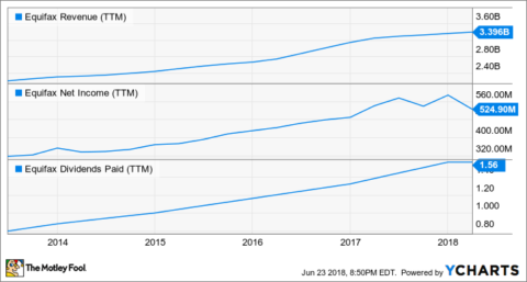 Equifax hat derzeit eine bescheidene Dividendenrendite von nur 1,2 %. Aber es scheint eine sichere Dividende zu sein, egal was das Unternehmen macht. Wenn ein Datenleck, welcher 150 Millionen Menschen betraf, Equifax nicht zu Fall bringen konnte, was kann es dann?