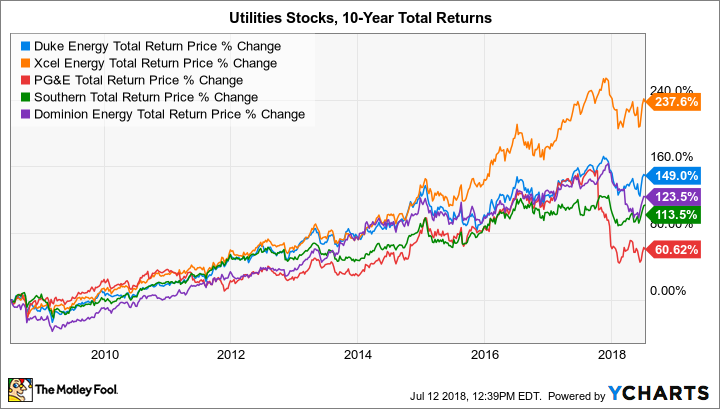 Vielleicht ist es nicht überraschend, dass es einen allgemeinen Zusammenhang zwischen den langfristigen Gesamtrenditen der Aktien und den Programmen für Energieeffizienz und erneuerbare Energien gibt. Diese Korrelation war vor dem Zusammenbruch der PG&E-Aktie Ende 2017 nocht stärker, als das Unternehmen seine Dividende aussetzte, um die regionalen Risiken der Waldbrände in Kalifornien besser bewältigen zu können.