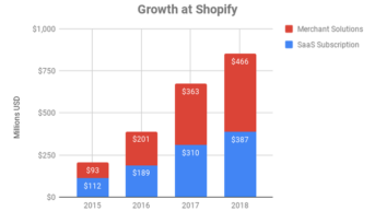 Während die SaaS-Seite große Bruttomargen bietet (nach der ersten Einrichtung der Plattform kostet den Service jeder zusätzliche Benutzer fast nichts mehr), sind die Händlerlösungen für Shopify spottbillig zu vermarkten oder zu entwickeln – auch wenn die Bruttomargen hier deutlich kleiner sind.