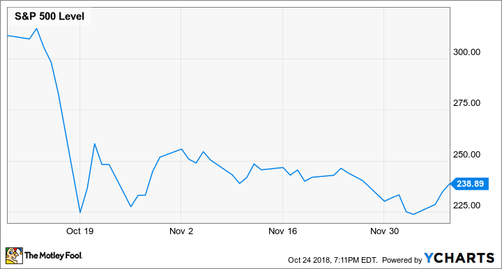 Hier ist eine Grafik des S&P 500 für das laufende Jahr, die den Rückgang Ende Januar/Anfang Februar und den jüngsten Rückgang im Oktober zeigt.