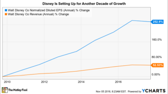 Aber das eigentlich Interessante hier ist die langfristige Perspektive. In den letzten zehn Jahren steigerte Disney den Umsatz von 37,8 Milliarden USD auf 55,1 Milliarden USD. Der Gewinn hat sich in diesem Zeitraum mehr als verdoppelt und stieg von 2,28 USD pro Aktie auf 5,69 USD. Der Zukauf der Marken Marvel und Star Wars machten große Teile dieses Erfolgs aus. Die Zukunft könnte ebenso vielversprechend sein.