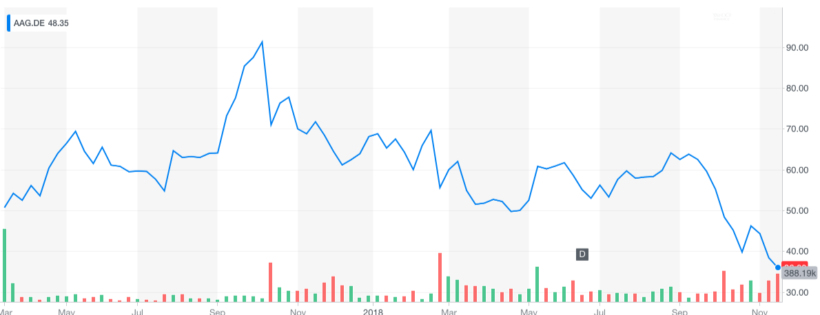 Aumann (ETR:AAG) seit März 2017, Grafik von Yahoo!Finance