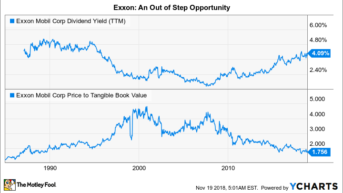 Exxon will dieses Problem beheben, aber getreu seiner zurückhaltenden Ausrichtung konzentriert sich das Unternehmen eher auf hochwertige Produktion und nicht auf Schnellschüsse. Die Ziele wurden bis zum Jahr 2025 gesteckt, also über einen recht langen Zeitrahmen. In dieser Zeit soll auf große Projekte in den Bereichen Flüssiggas, Offshore-Ölbohrungen und Onshore-Ölbohrungen in den USA gesetzt werden. Das ist recht lang. Aber mit einer Rendite von 4 %, etwa dem Doppelten dessen, was man von einem Indexfonds zum S&P 500 bekommen würde, hat man gute Gründe, an Bord zu bleiben. Und bei einem so vorsichtigen, diversifizierten Unternehmen gibt es wenig Zweifel, dass Exxon seinen Plan sogar bei wieder fallenden Ölpreisen umsetzen wird.