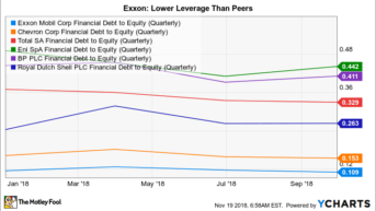 Obwohl Exxon finanzstark und eindeutig der Dividende zugeneigt ist, muss man sich fragen, was wohl sein mag, wenn die Wachstumspläne stimmen, nicht aber die Ölpreise? Schließlich liegen zwischen 2018 und 2025 einige Jahre, in der die Ölpreise sinken – der jüngste Rückgang um 20 % sollte einem die Volatilität der Branche noch einmal in Erinnerung rufen. Auch wenn Exxon das Potenzial für eine Verdoppelung des Gewinns oder mehr bis 2025 ins Feld geführt hat, hat man auch Notfallpläne. So hat man auch eine Gewinnschätzung vorgelegt, nach der die Einnahmen um 35 % steigen würden, sollte Öl auf 40 USD pro Barrel fallen. (Jüngst lag der Ölpreis zwischen 60 USD bis 70 USD pro Barrel). Selbst relativ niedrige Ölpreise werden die Wachstumspläne des Unternehmens also nicht zunichte machen, sondern sie nur ein wenig verlangsamen. Das wiederum bedeutet, dass niedrige Ölpreise kein großes Risiko für die Dividende darstellen.