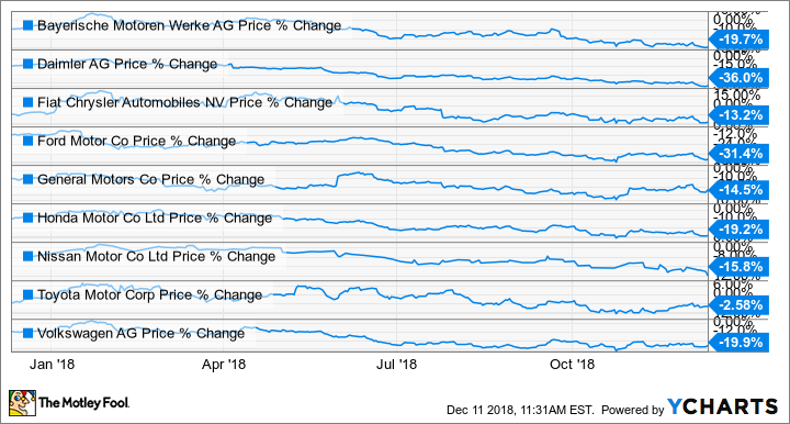 Daten via YCharts. Die Aktienpreise zeigen den Jahresverlauf 2018 bis zum 11.12.2018 an