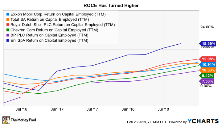 In Bezug auf den ROCE will Exxon bei rund 15 % liegen. Auch wenn der ROCE des Unternehmens immer noch mittelmäßig ist, hat er sich wieder verbessert. Anfang 2017 lag der ROCE im niedrigen einstelligen Bereich, lag 2018 aber knapp über 10 %. Steigende Ölpreise haben dabei geholfen, aber auch der Schritt des Unternehmens, die Projekte, in die es investiert, besser zu kontrollieren. Im Laufe der Zeit sollte es dem Unternehmen durch eine stärkere Beteiligung möglich sein, seine Expertise bei riesigen Energieprojekten besser einzusetzen. Hier sollte Exxon noch besser werden, da das Management sein Portfolio auf die besten Investitionsmöglichkeiten ausrichtet.