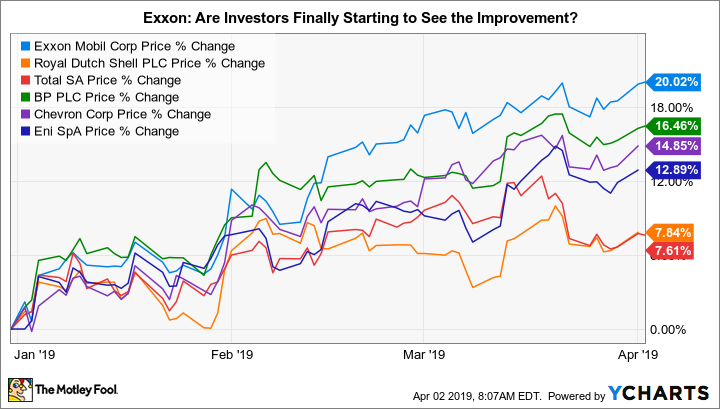 Was ist hier los? Seit einigen Jahren sinkt die Produktion von Exxon, was für einen Ölkonzern keine gute Sache ist. Trotz eines Produktionsrückgangs im Jahr 2018 gegenüber dem Vorjahr kam es jedoch zu einer spürbaren Verbesserung in der zweiten Jahreshälfte – die Produktion stieg zwischen dem zweiten und dritten Quartal und noch einmal zwischen dem dritten und vierten Quartal. Obwohl also die Produktion im Jahr 2018 auf den ersten Blick wie ein weiteres Minus aussieht, verbirgt sich hinter den Zahlen ein positiver Trend.