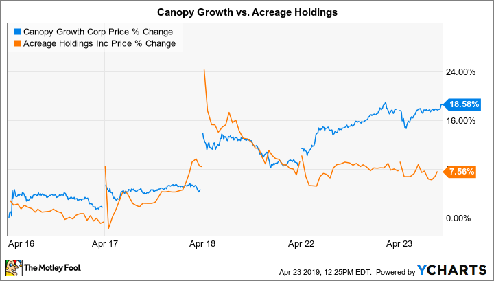 Wie man bei der Bekanntgabe des Deals erwarten konnte, stiegen die Acreage-Aktien deutlich an. Ungewöhnlich ist jedoch, dassAcreage in den Tagen nach der Ankündigung einen Großteil dieser Gewinne wieder verloren hat – obwohl die Canopy-Aktien weiter an Akzeptanz gewinnen.