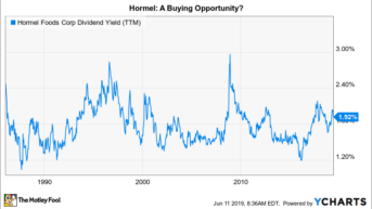 Aber hier ist die Sache, die Hormel derzeit so attraktiv macht: Diese Rendite von 2,1 %, wenn sie auch nicht sehr hoch ist, liegt doch im oberen Bereich der historischen Bandbreite des Unternehmens. Hormel hat stets ein zweistelliges Dividendenwachstum erzielt, das von dem finanzstarken Unternehmen getragen wird (die Ausschüttungsquote liegt übrigens bei angemessenen 40 %). Man macht die Probleme mit den neuen Verbraucherwünschen auch nicht das erste Mal in der Unternehmensgeschichte durch, sonst hätte man nicht fünf Jahrzehnte Dividendenerhöhungen geschafft. Alles in allem sieht es so aus, als ob Dividendenanleger hier gut bedient werden, auch wenn 2,1 % etwas unter dem normalen Renditeziel liegen.