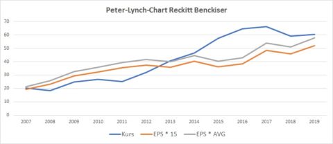 Bei Reckitt Benckiser wäre der perfekte Einstiegszeitpunkt leider auch vor 2013 gewesen. Hier haben sich die Gewinne seitdem stetig entwickelt, trotzdem hat der Aktienkurs die beiden Linien überholt und das Unternehmen ist momentan eher teuer bewertet. Hier würde ich daher wie bei Diageo auf eine Korrektur für den Einstieg warten.