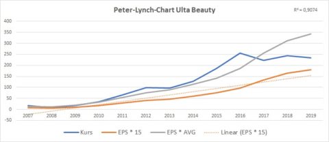 Ulta Beauty lässt sich vereinfacht als das amerikanische Douglas beschreiben. Die ganzen genannten Punkte treffen auch hier zu, nur hat man durch den einheitlicheren nordamerikanischen Markt den Vorteil, weniger länderspezifische Anpassungen vornehmen zu müssen als Douglas in Europa. Das Unternehmen hat ca. 7 % Marktanteil am Beauty-Markt in den USA und ein Kundenbindungsprogramm mit mehr als 30 Mio. Teilnehmern, die für 95 % der Umsätze des Unternehmens verantwortlich sind. Das Unternehmen hat ebenfalls verstanden, dass es nur als Multichannel-Anbieter überleben kann. So wurden 2019 11 % der Umsätze erzielt und der Geschäftsteil wächst weiterhin sehr schnell.