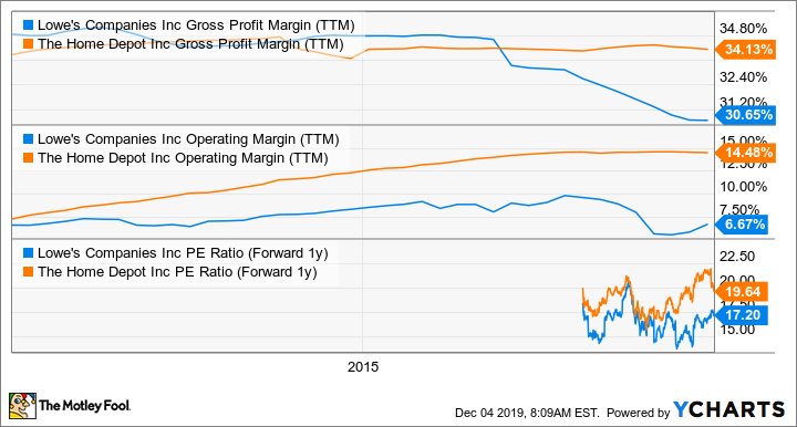 Wenn der CEO von Lowe’s, Marvin Ellison, die Lücke zwischen Lowe’s und seinem ehemaligen Unternehmen, The Home Depot (WKN: 866953), schließen kann, könnten sich die Margen und dann die Erträge dramatisch verbessern, und der Preis, den der Markt bereit ist, für die Aktie von Lowe’s zu zahlen, könnte sich ebenfalls verbessern.
