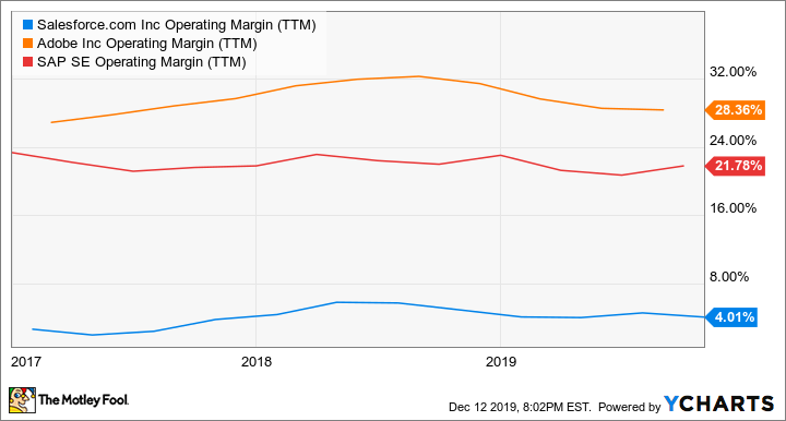 Im Geschäftsjahr 2016 betrug der Betriebsgewinn von Salesforce nur 115 Millionen USD bei einem Umsatz von 6,7 Milliarden USD, was einer Marge von nur 1,7 % entspricht. 2019 sprangen diese Zahlen auf 13,3 Milliarden USD Umsatz und 535 Millionen USD Betriebsgewinn, was einer verbesserten Betriebsmarge von 4 % entspricht.