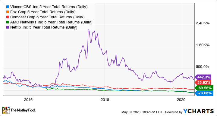 Das Ergebnis? Die meisten alten Medienunternehmen haben einen starken Rückgang der Aktienkurse erlebt, während andere sich mit großen Kabel- oder Telekommunikationsunternehmen zusammengeschlossen und sich im Grunde genommen „verkauft“ haben, bevor es schlimmer wurde. In der Zwischenzeit haben die Aktien von Netflix die Konkurrenz bei weitem geschlagen.