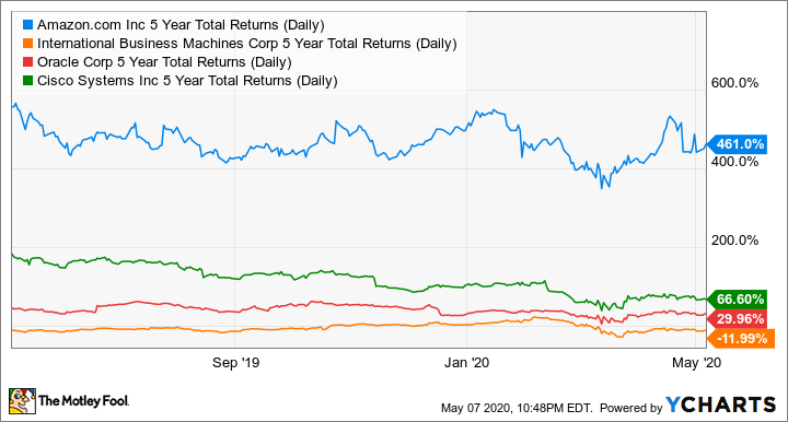 Aber Amazon gab sich nicht damit zufrieden, nur den Einzelhandel zu stören. Vielleicht noch folgenschwerer war Amazons Störung des Technologiebereichs für Unternehmen, insbesondere durch die Erfindung des Konzepts des Cloud Computing. Während Consulting und Technologiemanagement vor Ort die traditionellen IT-Dienstleistungen für Unternehmen zu einem sehr profitablen Geschäft machten, ermöglichte die öffentliche Cloud den Unternehmen eine größere Flexibilität, Erschwinglichkeit und einen Zugang zu den neuesten Technologien auf der Basis der Nutzung. Das hat vielen großen IT-Unternehmen, die früher diesen Bereich „beherrschten“ und hohe Dividenden ausschütteten, wie IBM (WKN:851399), Oracle (WKN:871460) und Cisco (WKN:878841), Marktanteile gekostet.