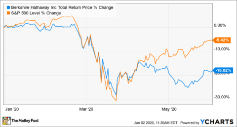 Ich glaube, es hat niemanden überrascht, dass Berkshire Hathaway um etwa 30 % gesunken ist, als der Markt im März zusammenbrach. Aber es ist ein wenig überraschend, dass sich die Aktie noch nicht wirklich erholt hat. Während der S&P 500 im Jahr 2020 nur um 5 % gefallen ist, liegt Berkshire immer noch 18 % unter dem Stand vom Jahresbeginn.