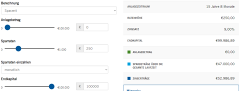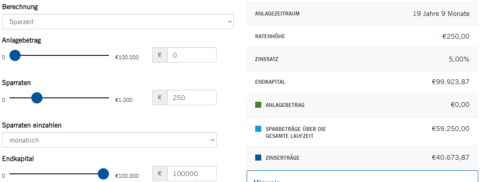 Keinesfalls sollen die nächsten Zeilen jemanden, der seinen „Ich-will-100.000-Euro-sparen-Plan“ im Kopf hat, irgendwie verunsichern. Aber folgendermaßen sieht die Realität doch im Moment aus. Die Zinsen, die man für Spareinlagen erhält, sind mittlerweile ja nicht mal mehr unter dem Mikroskop zu erkennen. Deshalb vernachlässigen wir sie in der nachfolgenden Betrachtung einfach.