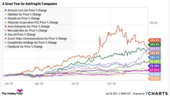 Meiner Meinung nach macht eine Aktie eine gute Beteiligung aus, wenn das Unternehmen hinter der Aktie „antifragil“ ist. Tatsächlich haben die 10 antifragilsten Aktien nach einem System, das ich in den letzten fünf Jahren verwendet habe, ihren Wert im Jahr 2020 im Durchschnitt fast verdreifacht.