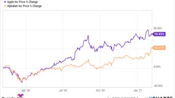 Die steigende Nachfrage nach Tech-Produkten sowie Apples neue Technologien wie das 5G-iPhone, die Apple Watch und der Apple-Silizium-Chip haben wahrscheinlich dazu beigetragen, die Nachfrage nach der Aktie zu steigern. Das hat dazu beigetragen, dass die Apple-Aktie in den letzten zwölf Monaten fast das Doppelte der Alphabet-Aktie erreicht hat.