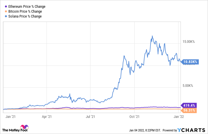 Neulich schrieb ich über Ethereum (WKN:A2YY6X) und Solana (CRYPTO:SOL) und sagte: „Blut ist im Wasser und Solana ist ein großer weißer Hai.“ Solana tauchte letztes Jahr aus dem Nichts auf und brachte frühen Investoren schockierende Renditen ein. Sein Coin stieg um fast 11.000 %. Und er ist nicht der einzige. Avalanche (CRYPTO: AVAX) ist um 3.000 % gestiegen. Fantom (CRYPTO: FTM) – der so neu ist, dass Coinbase ihn noch nicht anbietet – ist in diesem Jahr um 14.000 % gestiegen.