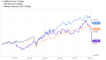 Daniel Foelber (Netflix): Wenn gute Unternehmen günstig zu haben sind, ist das normalerweise ein guter Zeitpunkt zum Kauf. Die Aktienkurse von Netflix wurden in den Ruin getrieben, und das nicht zu knapp. Mit einem Minus von 40 % im bisherigen Jahresverlauf hat Netflix in den letzten drei Jahren kaum noch zugelegt. In dem Zeitraum konnten der Nasdaq und der S&P 500 selbst nach ihren jüngsten Rückschlägen gigantische Gewinne verbuchen.