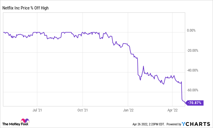 Netflix hat zum ersten Mal seit fast einem Jahrzehnt Abonnenten verloren. Im zweiten Quartal 2022 rechnet das Unternehmen mit einem Verlust von zwei Millionen Abonnenten. Die Strategie, die Netflix bei begrenztem Wettbewerb verfolgte, hat sich bewährt, aber jetzt, wo die Konkurrenz auf den Plan tritt, könnte es Zeit für einen Wechsel sein. Die Aktie ist seit ihrem Höchststand um 71 % gesunken, so dass das Unternehmen wahrscheinlich eher früher als später eine effektive Anpassung vornehmen muss.