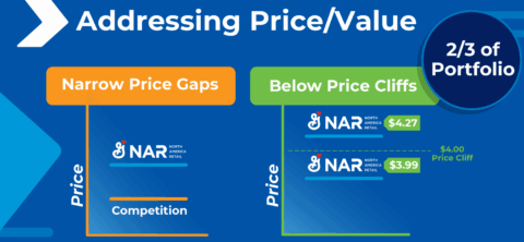 Aber man adressiere auch bewusst das Hochpreis-Segment. So zeigt General Mills, dass man aktiv mit der Preisgrenze von 3,99 US-Dollar für viele Produkte breche. Das sehen wir hier:
